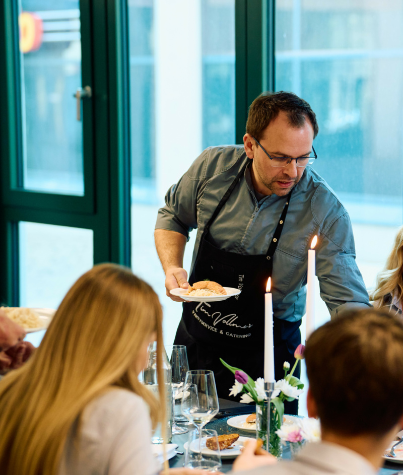 Wir sorgen zwischen Sektempfang, Kaffee und Kuchen, einem warmen Buffet oder Menü mit unserem Service vor Ort für alles, damit du dich entspannt zurücklehnen und mit deinen Gästen genießen kannst.